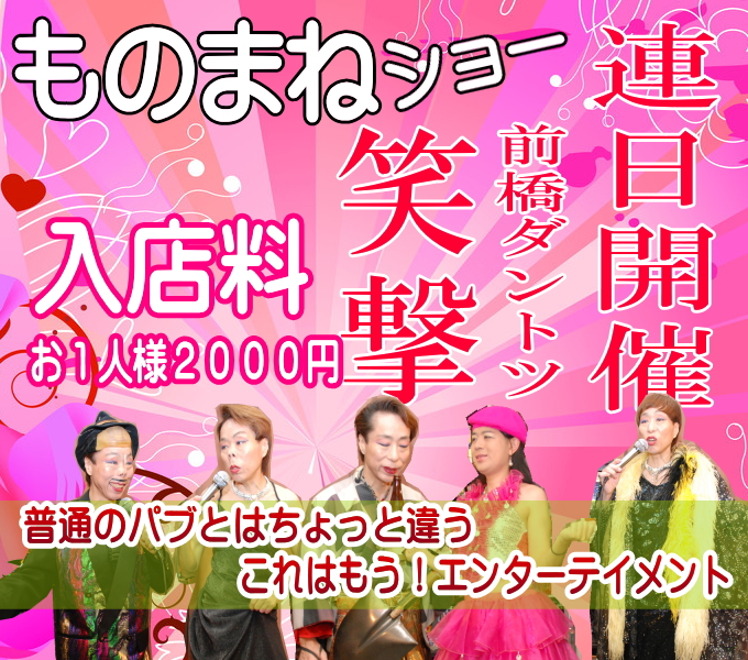 誰もが知ってる人のものまねから〜〜 今話題の「小〇都知事」のものまねまで〜〜トークも歌もどれも最高のパフォーマンス! お客様も大爆笑で大盛り!! |